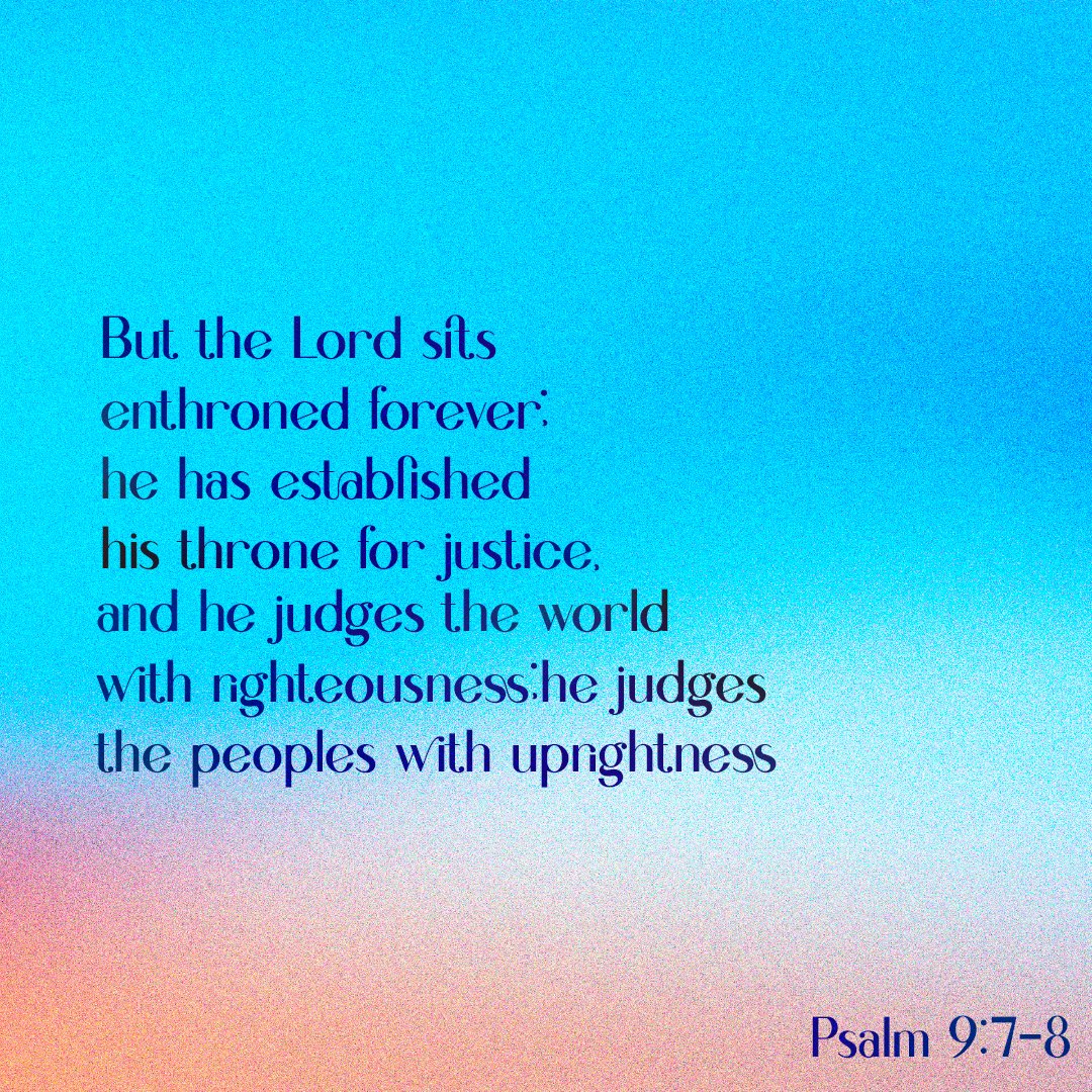 The Lord has established His throne in judgement and His sovereign authority rules over all. After recounting Gods wonderful deeds of the past in verses 3-6 the Psalmist now shifts his focus to what God will do in the future in verses 7-12 you may. He is unchanging and changeless and His righteousness abides forever.