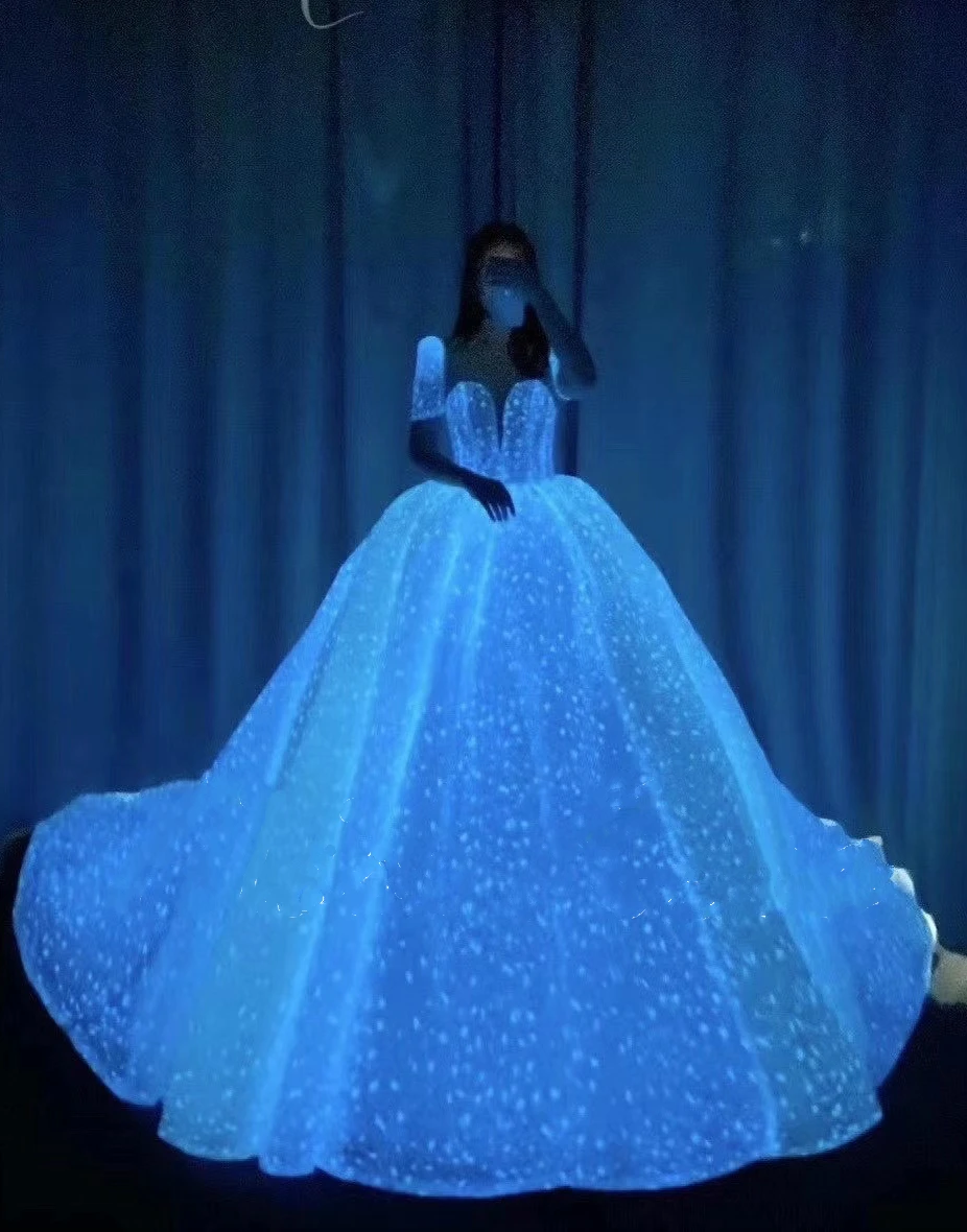 Led Light Up Fiber Optic Formal Luxury Glowing Party Wedding Dress Luminous Bridal Gown S White At Amazon Women S Clothing Store